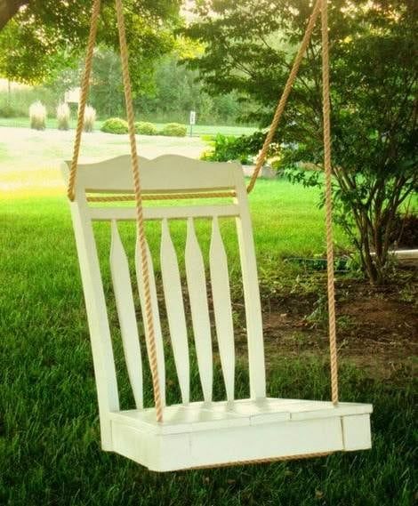 Los columpios más básicos no llevan nunca respaldo, sin embargo estos columpios hechos con sillas reutilizadas sí llevan.