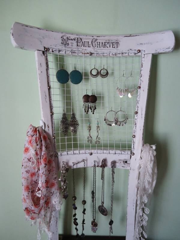 El último de esta lista de objetos hechos con sillas recicladas es un joyero. Quedan divinos y muy prácticos para guardar tus collares y además, tenerlos a la vista para usarlos.