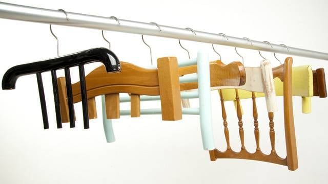 Si, por el contrario, sos de las que suelen dejar la ropa en el respaldo de una silla pero te gustaría dejar de hacerlo; podés hacer perchas con los respaldos de sillas recicladas. Sólo tenés que cortar la parte superior, encastrarle ganchos y colgarla en el armario. Así podrás seguir poniendo tu ropa encima de la silla evitando la sensación de desorden y, de paso, decorar reciclando.
