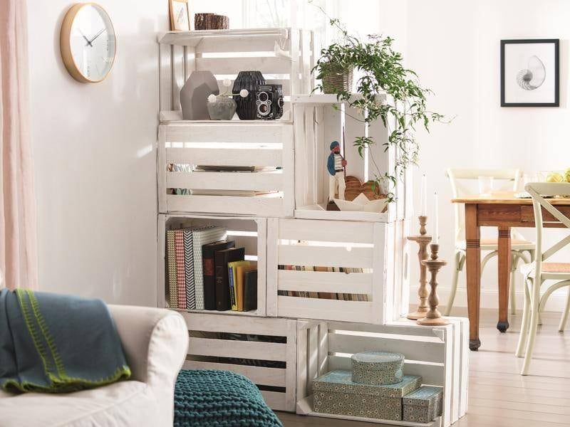 Más opciones son las cajones de madera reciclados. Podés crear tu propio separador añadiendo las cajas que quieras y si las pintás y decorás conseguirás un precioso rincón.