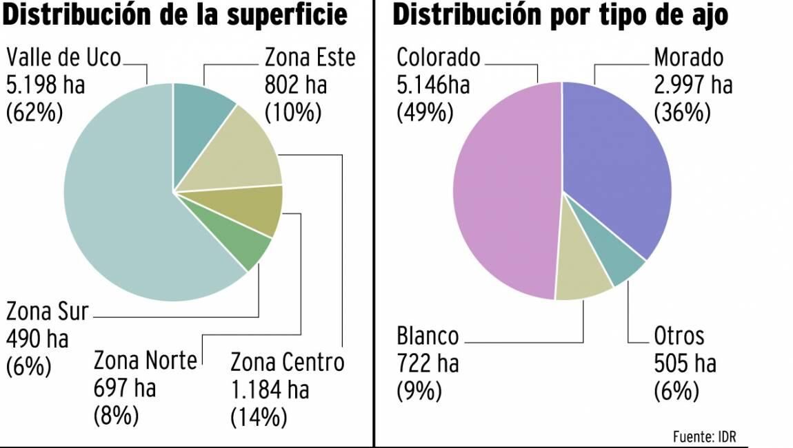 El área sembrada este año se redujo 14% respecto de la destinada al cultivo de ajo durante el período agrícola 2014. Así lo consignó el Instituto de Desarrollo Rural (IDR) de Mendoza en su estimación de la superficie hortícola invernal para la temporada 2015.