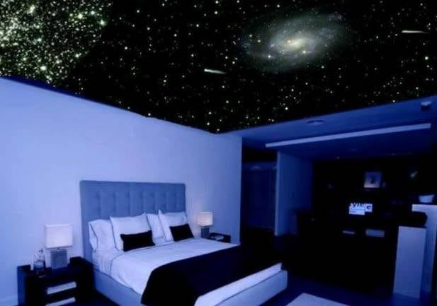 Tanto la habitación de un niño como la de un adulto pueden estar decoradas con esta idea super creativa. Ambos habitantes de estos espacios pueden disfrutar del sutil resplandor de la luz estelar en el dormitorio.