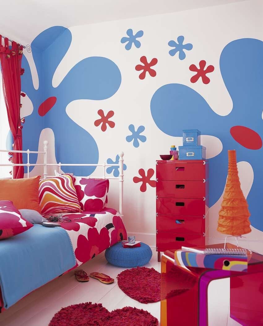 En cambio, para un cuarto infantil, donde prima el juego y la diversión, la mejor opción es realizar un mural que destaque toda una pared, con flores grandes que llamen la atención a través del uso de gamas complementarias.