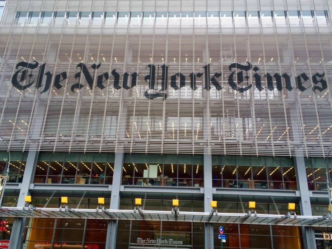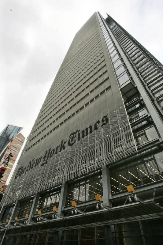 "The New York Times", es una de las seis sedes de Times Company. Remitiéndonos a la historia, en 1904, " Times Tower", la casa donde funcionaba la antigua redacción, fue trasladado al "uptown", también conocido como Alto Manhattan. "The Times" (así se llamó el periódico desde sus comienzos) se instaló en el epicentro de la ciudad y poco tiempo más tarde, esa zona antes llamada Longacre Square, fue denominada "Times Square" en honor al periódico.
