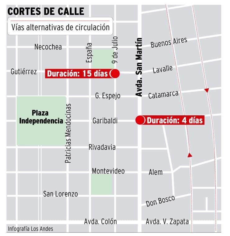 En la intersección de Gutiérrez y 9 de Julio, por 15 días; y en Garibaldi y San Martín, desde hoy hasta el domingo.