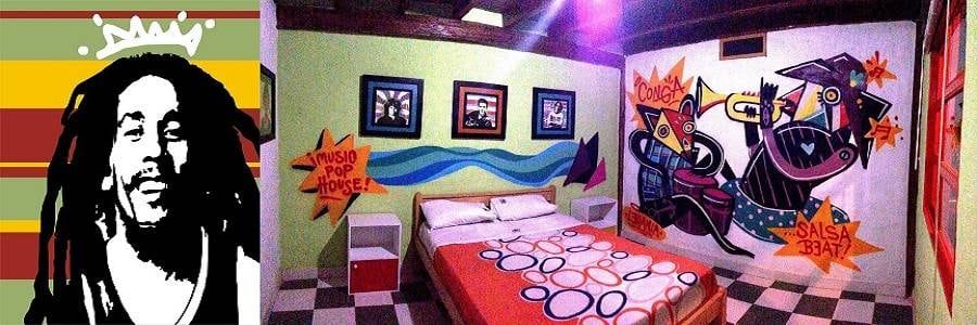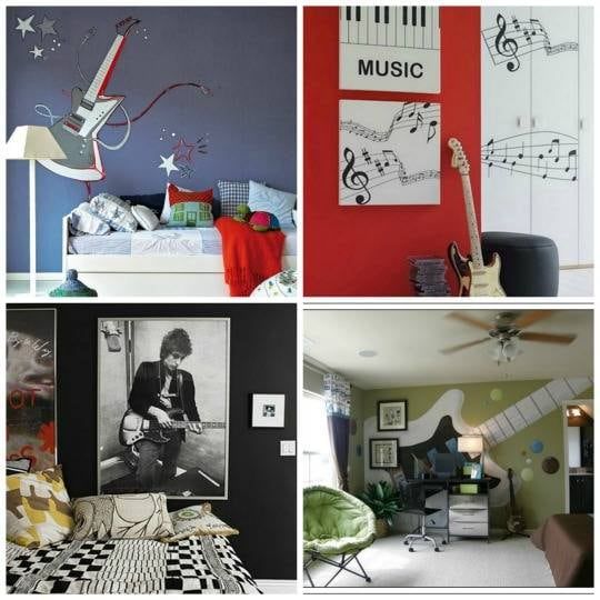 - Colgá algunos instrumentos, propios o reciclados y acompañalos de objetos como discos de vinilo y posters. Seguro conseguirás una habitación temática perfecta.