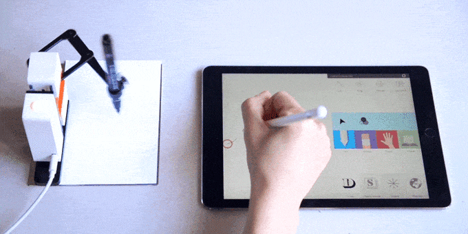 Un equipo de emprendedores creó Line-us, un pequeño robot que funciona como un brazo mecánico el cual conecta una aplicación a una tablet o smartphone y dibuja todo lo que quiera el usuario en tiempo real, se informó hoy.
