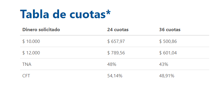 Con este monto, ahora los que cobran solo una asignación podrían solicitar el máximos de $12.000, asumiendo un compromiso de 36 cuotas con un Costo Financiero Total del 48,91%, o $10.000 pagando en 24 cuotas y con un Costo Financiero del 54,14%.