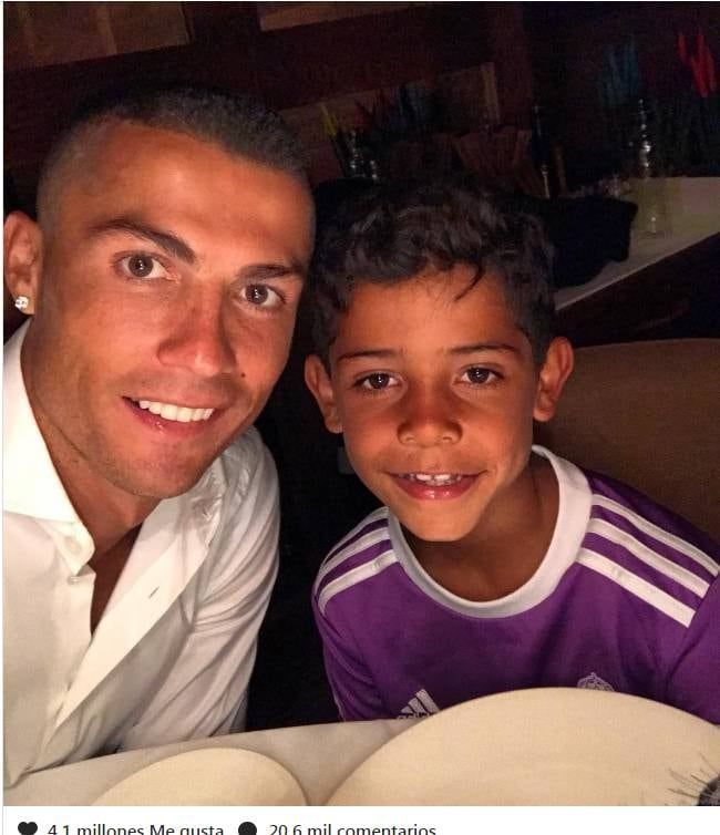El crack portugués junto a su hijo, luciendo su cambio de imagen. (instagram)