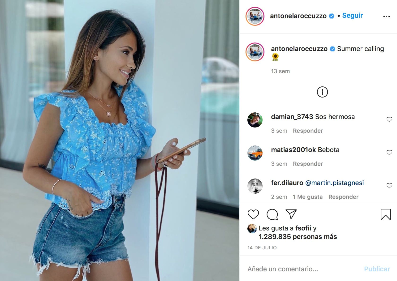En una de las últimas fotos que la mamá de Thiago, Mateo y Ciro subió, se la puede ver de espaldas con un conjunto veraniego y unos cortísimos short que muestran sus tonificadas piernas. La platea masculina enloqueció. “El mayor logro de Messi, sin dudas”, “Hace todo bien Messi?” y “Queres ser mi novia?” eran solo algunos de los comentarios que invadieron la foto de la botinera, que ademas ya tiene más de 1 millón de likes.