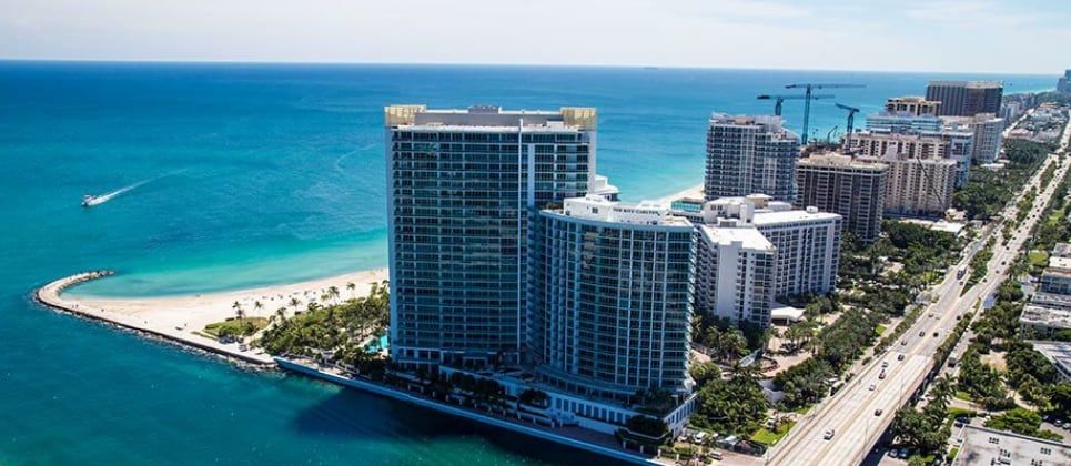 La propiedad se encuentra en el exclusivo barrio de BAl Harbour, sobre la Avenida Collins, desde donde se pueden tener las mejores vistas del mar.