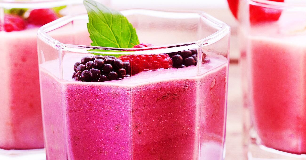 Ingredientes: 1 taza de moras, 4 hojas de espinaca, ¼ taza de leche descremada, 1 taza de yogur natural sin azúcar, 2 cucharaditas de miel o stevia y 5 almendras.