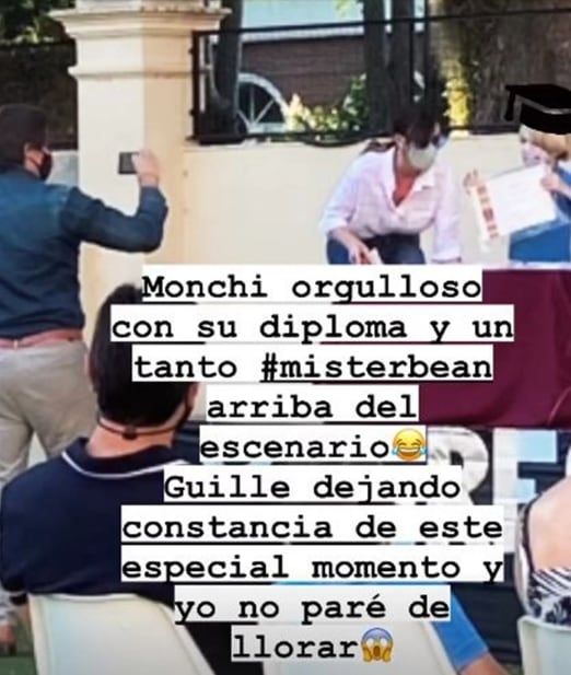 “Monchi orgulloso con su diploma y un tanto #MisterBean arriba del escenario. Guille dejando constancia de ese momento especial”, posteó en una storie la madre orgullosa.