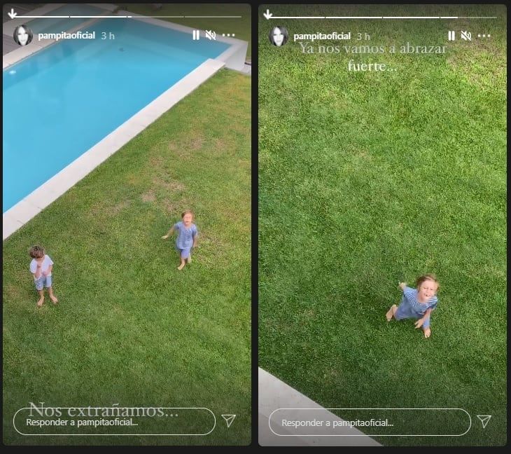 Y ahora, desde las cuatro paredes en las que pasa sus días, Pampita mostró lo difícil que es estar sin sus hijos. En las historias, publicó un video muy tierno de Beltrán y Benicio Vicuña demostrándole todo lo que la quieren. Fue a través de la ventana, desde el jardín de la casa.