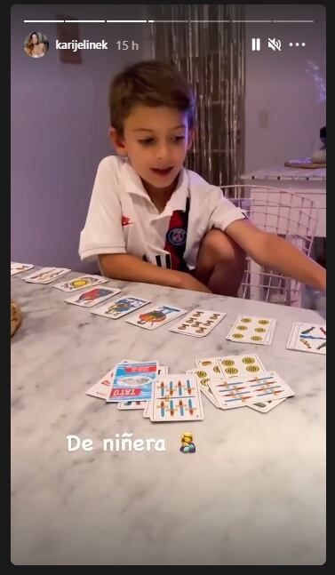La modelo se mostró en historias y en un vivo jugando a las cartas con Benicio, el hijo de su amiga Flor Parisse. “Me está enseñando a jugar al truco y le vengo ganando porque me está enseñando súper bien”, se la escucha decir en la transmisión en vivo que tituló como “Noche de juego con mi compañero”.