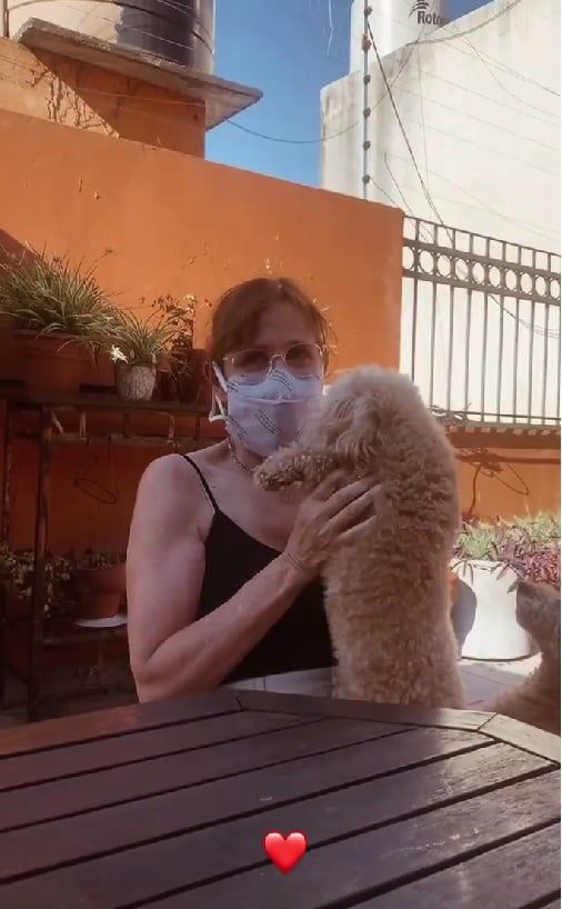 “Estamos festejando Pascuas con una renacida, los tres, los perros también. Te amo, mamá”.