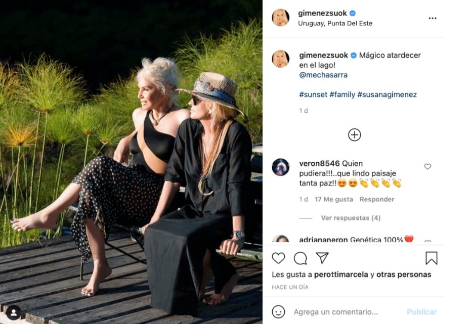fue que desde el país vecino oriental comparte todo tipo de postales que muestran cómo son sus días allí. La última publicación que hizo fue de ella junto a su hija, Mercedes “Mecha” Sarrabayrouse en el lago que está dentro de su propiedad.