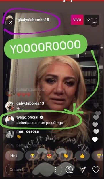 “Deberías de ir de un psicólogo”, le escribió Tyago mientras Gladys se mostraba muy angustiada.