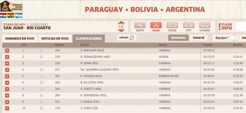 Tras perder mucho tiempo reparando su quad, Axel Dutrie pudo reanudar la carrera y llegar al ASS1. El francés acumula un retraso de 1h10 con respecto a Sergey Karyakin.