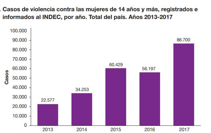 No obstante, un dato importante es que según este informe en solo 4 años se cuadruplicaron los hechos de violencia de género, que pasó de 22.577 en 2013 a 86.700 en 2017.