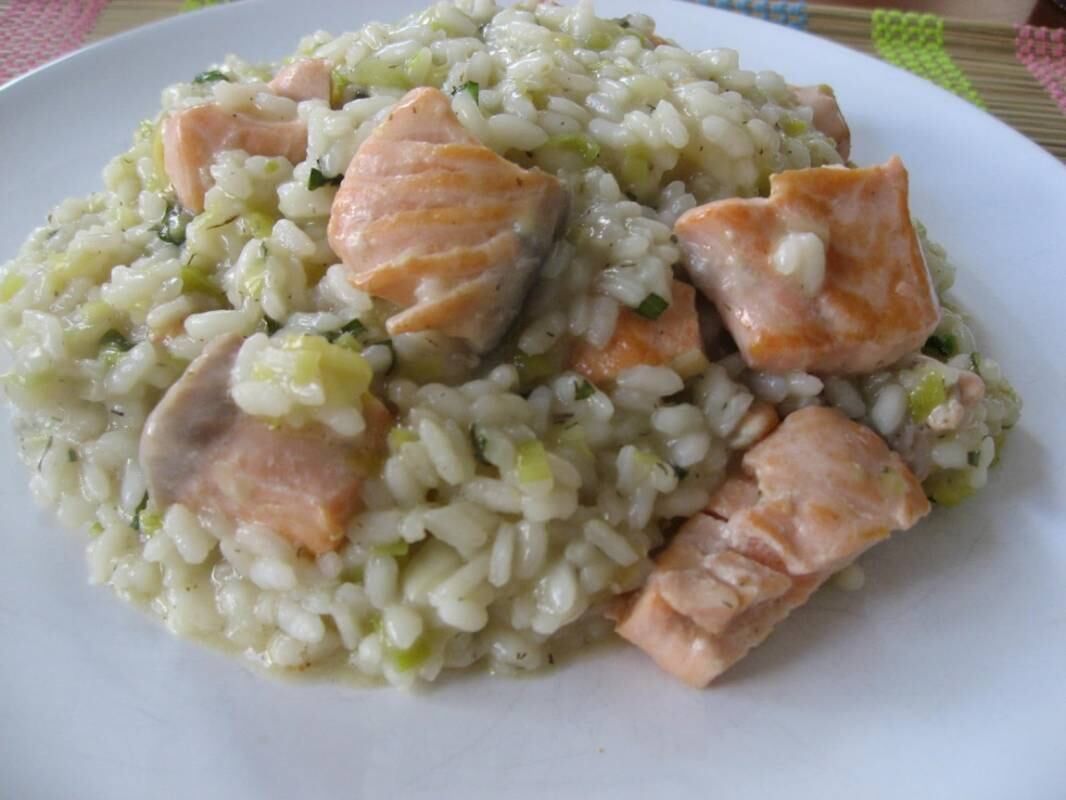 Esta receta de risotto de salmón es ideal para niños, ya que tiene un sabor suave y suele gustar incluso a aquellos con animadversión al pescado. Se usa salmón ahumado, para que sea más fácil y rápido de preparar y queda igual que con salmón fresco.