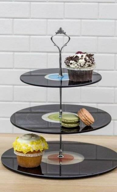 PORTA CUPCAKES CON DISCOS DE VINILO