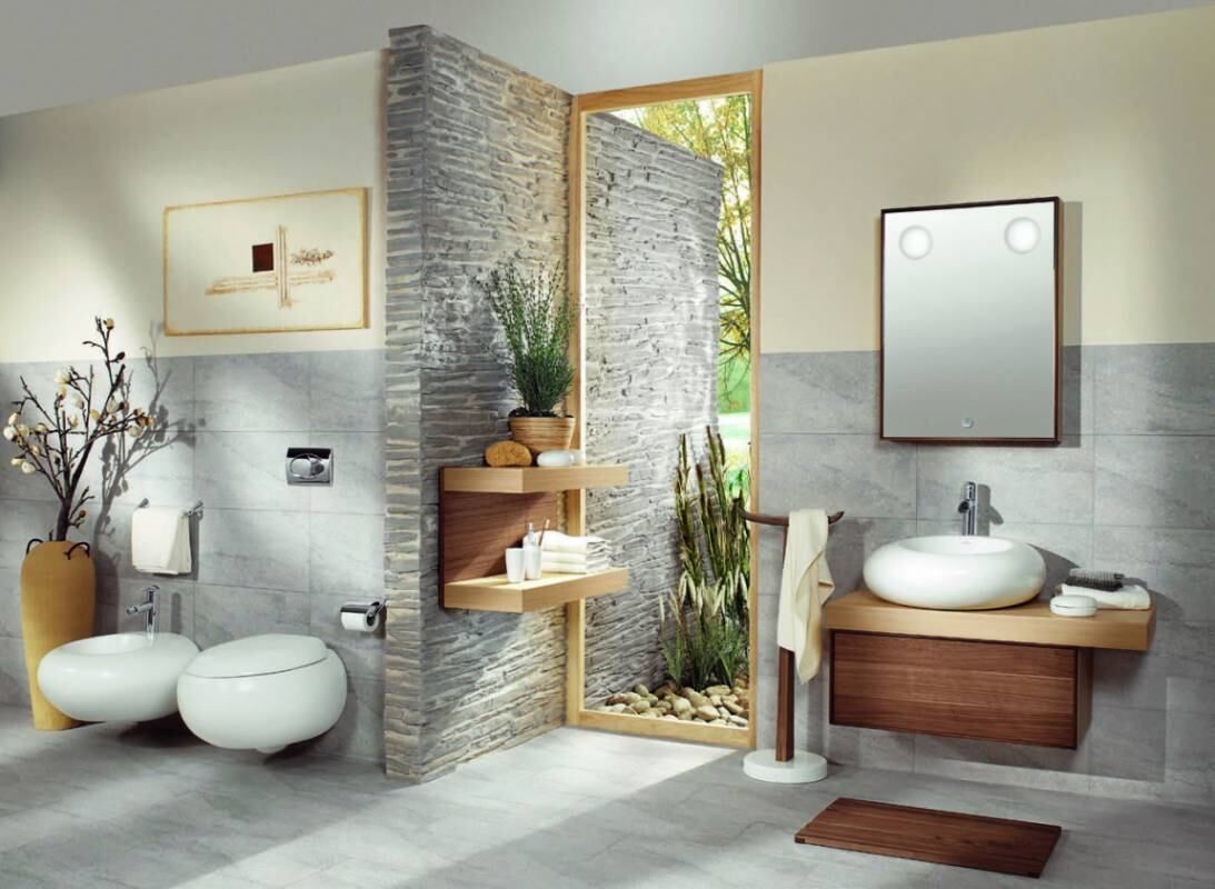 Estilo que no pasa de moda y que prima en los espacios llenos de luz natural con materiales que aporten calidez y sobre todo busca incorporar el exterior en el interior. En este baño puede apreciarse el afuera sin perder intimidad.