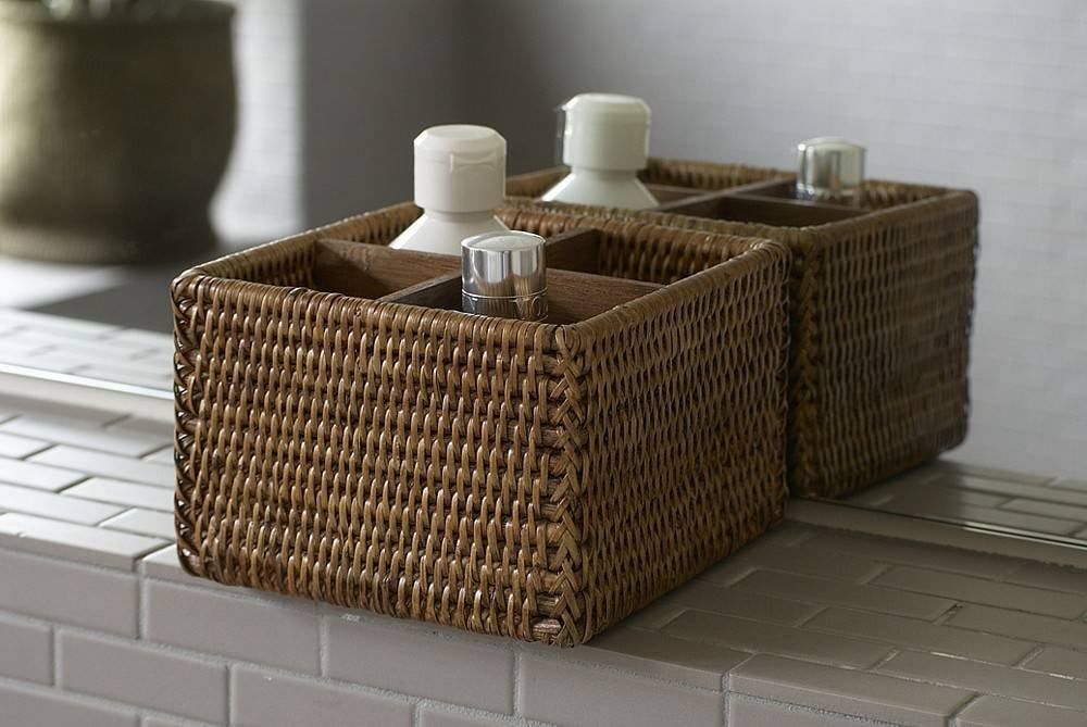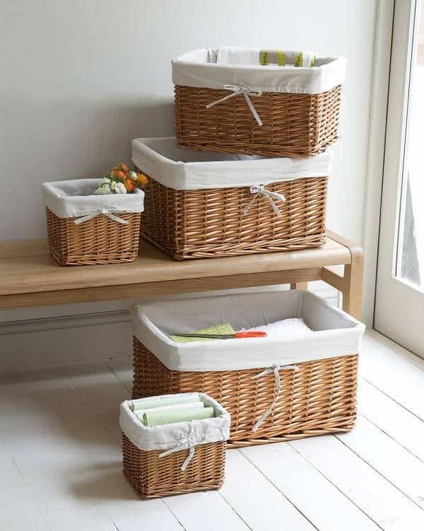 Existen algunas cestas de mimbre que incluyen su propio organizador, algo que facilita su uso. Incluso en algunos casos, encontrarás juegos de baños con su propio organizador hecho con este material, algo que lo convertirá en un objeto óptimo para regalar.