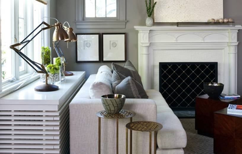 Algunos radiadores tradicionales se pueden cubrir con una reja de metal. En la repisa también se pueden colocar elementos decorativos, como lámparas o jarrones.