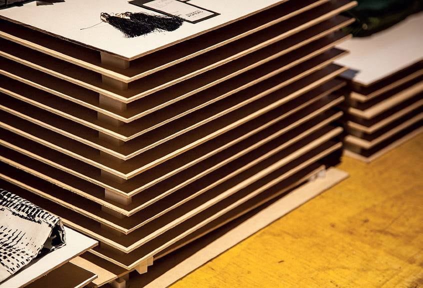 Varios son los recursos que se utilizaron de soporte para los objetos que se comercializan. Estos estantes compuestos rítmicamente por cuadrados de cartón, en varias alturas ¡son muy originales!