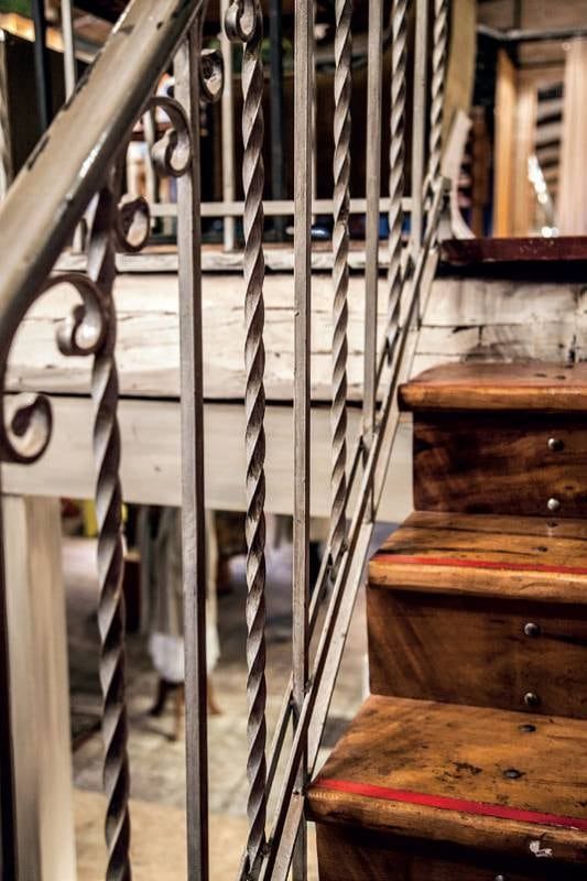 Detalle de la escalera de hierro torneado.