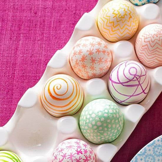 Una idea fácil y sencilla que podés hacer en poco tiempo es decorar los huevos de Pascua con rotuladores, si son permanentes, mejor. Sólo tenés que buscar ejemplos que te inspiren como estos con motivos de rayas, estrellas, espirales, etc.