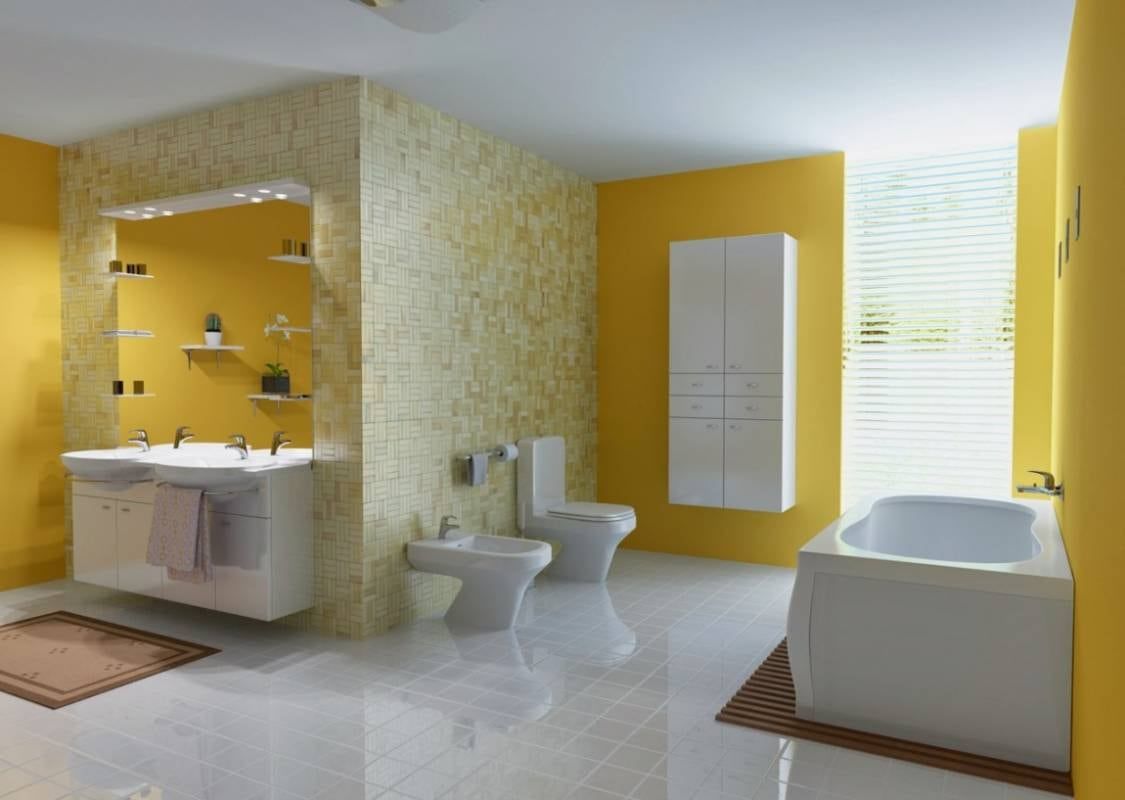 En el baño la fusión con el blanco crea un ambiente sutilmente alegre.