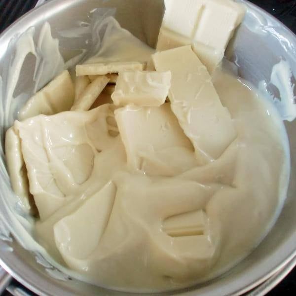 1. Poner la crema en un ollita. Cuando empieza hervir (salen burbujas), apagar el fuego.