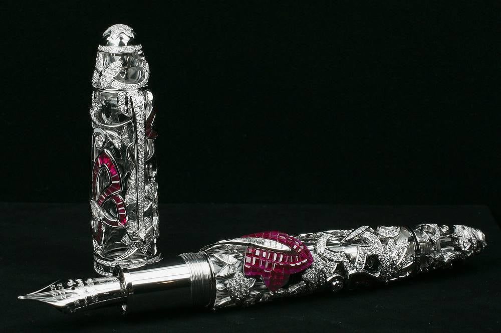 Una de las lapiceras más reconocidas y estilizadas del mundo. Se trata de la Visconti Ripple HRH Limited Edition una lapicera estilográfica de primer nivel y que no puede faltar en esta lista de las más caras del mundo. Está realizada en oro blanco de más de 18 quilates y posee diamantes en forma de bumerang. Tiene un plumín de dos tonos de oro de 18 quilates. Su precio es de 51.800 dólares. Tiene un sistema de depósito doble y se vende en dos versiones distintas en negro y blanco. Sin duda una pieza de reliquia para los amantes de las escritura más lujosa.