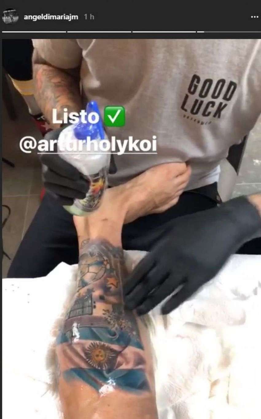 Ángel Di María mostró este jueves su última sesión de tatuajes. En la misma, una bandera argentina aparece grabada sobre su pierna y deja un interrogante.