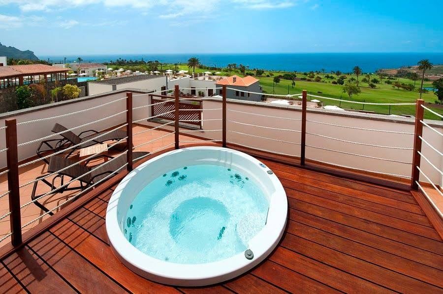 Si estás pensando en instalar un jacuzzi en tu terraza, disponés de una gran variedad de tamaños y formas de jacuzzis prefabricados en fibra de vidrio y acrílicos. Estos pueden tener una capacidad de entre 2 y 6 personas e incluso los podés encontrar infables (los podés armar y desarmar con facilidad). Para facilitar el acceso podés construir una plataforma de madera con escalones. Tenés que tener la precaución de comprobar si el suelo sobre el que se va a apoyar es resistente a la sobrecarga del agua que produce.