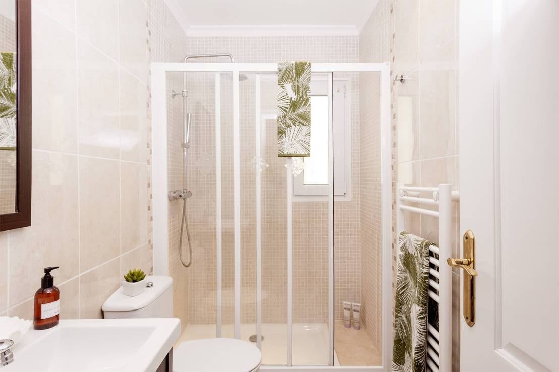 Si hablamos de baños clásicos lo que se nos viene a la cabeza es algo parecido a lo que vemos sobre estas líneas. El uso de colores crema que se vuelven gresité en la ducha, que se separa del resto del espacio por una mampara transparente. La idea que prevalece en este interior es la de higiene, fundamental en este estilo.