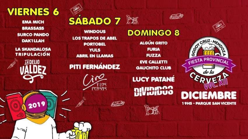 La Fiesta de la Cerveza 2019 se realizará los días 6, 7 y 8 de diciembre en el parque San Vicente de Godoy Cruz. Habrá recitales en vivo, patio de comidas, la infaltable cerveza y algunas sorpresas para quienes decidan asistir a disfrutar las jornadas.
