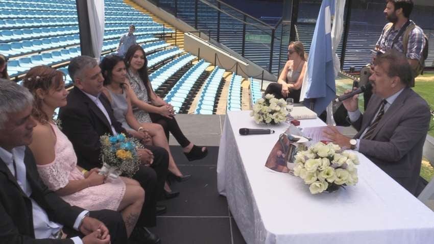 Doce parejas que tuvieron la suerte de ser sorteadas entre casi 1.400 cumplieron el sueño de casarse en La Bombonera, durante una ceremonia en la planta baja del estadio xeneize.