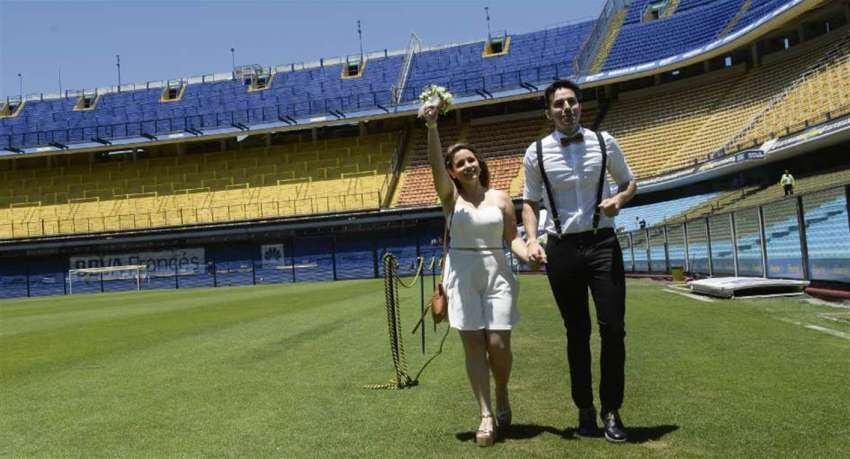 "Casarnos en el estadio significa todo, porque somos fanáticos y socios los dos, venimos a la cancha siempre. Boca es un sentimiento compartido que tenemos", dijo Gastón y aseguró: "Estamos felices".