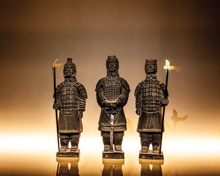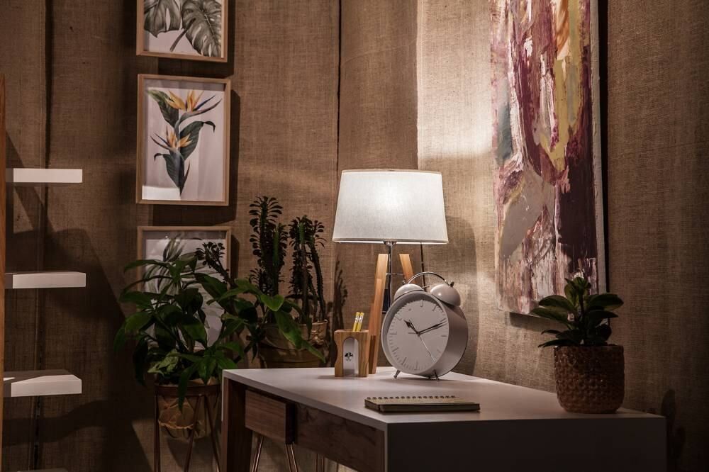 Pequeños elementos ubicados en la biblioteca retroiluminada.