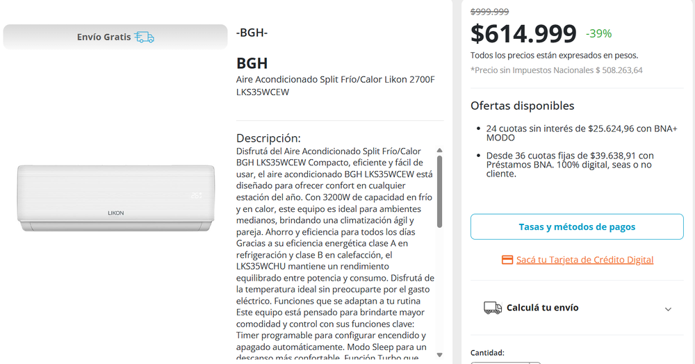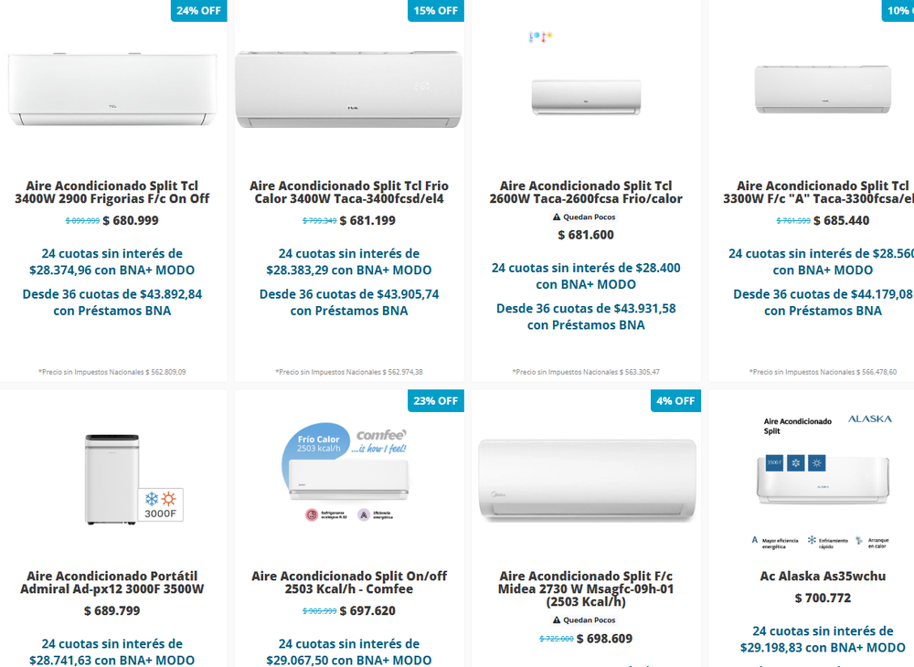 El CyberMonday 2025 llegó con ofertas únicas en aires acondicionados, con descuentos de hasta el 40% en Tienda BNA. En la plataforma del Banco Nación se consiguen modelos de primeras marcas con 24 cuotas sin interés y precios que arrancan por debajo de los $620.000.