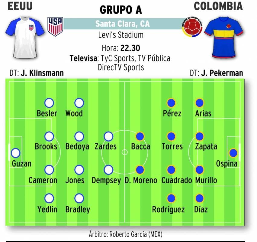 Ambos llegan entonados por los amistosos preparatorios: Estados Unidos venció a Puerto Rico 3-1, Ecuador 1-0 y Bolivia 4-0, mientras que Colombia se impuso el domingo 3-1 a Haití.