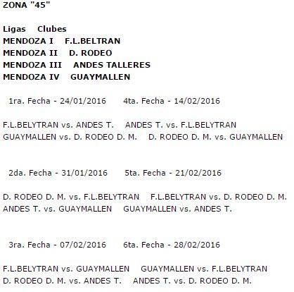 Con estos cambios, la zona 45 quedó confromada por Guaymallén, Beltrán, Andes Talleres y Rodeo del Medio; la 46 por La Amistad, La Libertad e Iriarte El Zampal; la 47 por Unión de Tunuyán, Sportivo Tunuyán y Social Tupungato y la 48 por Ferro de Alvear, Andes de Alvear, San Martín de Monte Comán y Villa Atuel.