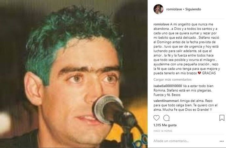 Luego lo completó agradeciendo a aquellos que la acompañaron en estos terribles días, en los que Stéfano peleó por su vida. Tanta fue la angustia, que Romina recurrió a su difunto primo para pedir un milagro: "A mi angelito que nunca me abandona (el Potro), a Dios y a todos los santos y a cada uno que se quiera sumar y rezar por mi bebito que está delicado", esciribió Olave.