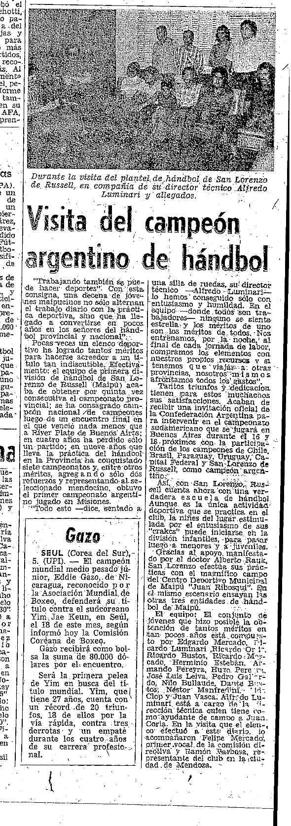 Todo fue azul y rojo en los años '70, cuando San Lorenzo de Russell, conocido como el “Ciclón” de Maipú, dejó su marca de nueve campeonatos consecutivos en el balonmano mendocino.