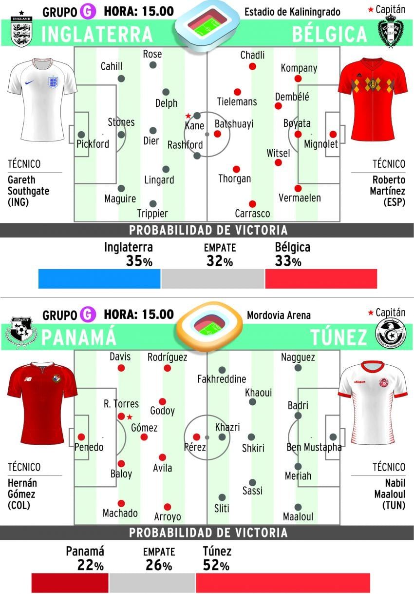 Ambas selecciones llegan al partido tras una actuación impresionante. En la segunda jornada, Bélgica goleó 5-2 a Túnez e Inglaterra aplastó 6-1 a Panamá, lo que deja a los dos igualados con seis puntos y una diferencia de goles de 8-2.