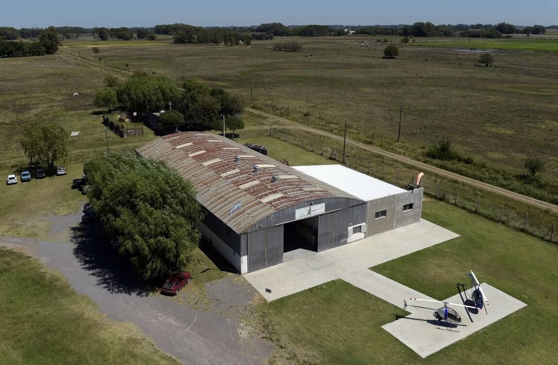 El sol del verano incendia los dos hangares y el césped de un verde irlandés. A lo lejos, hileras de álamos y el paisaje plano de la pampa.