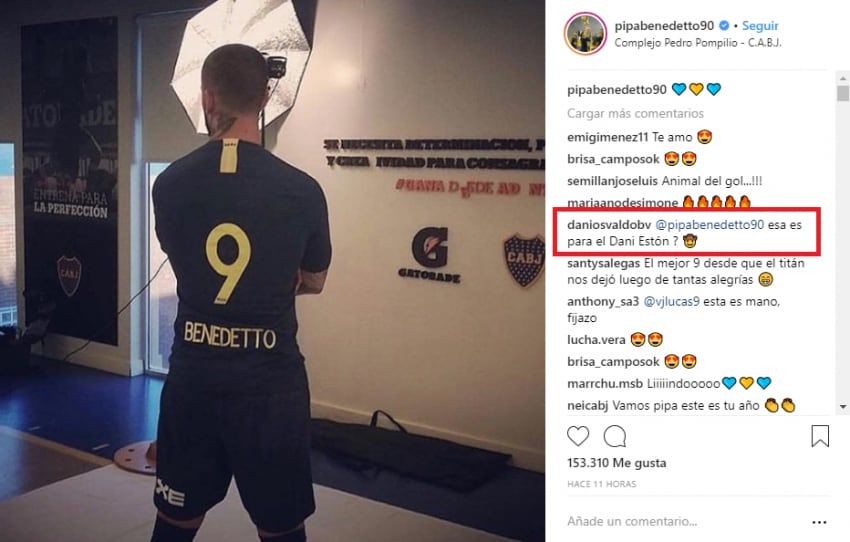 Pero uno de los comentarios llamó la atención porque era del ex delantero de Boca, Daniel Osvaldo. "esa (camiseta) es para el Dani Estón?" decía el comentario del actual cantante de "Barrio Viejo".